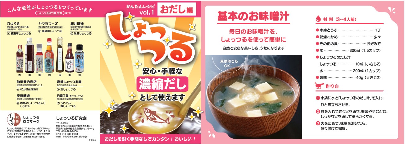 日南工業株式会社(代表取締役:久野 宏)では、令和5年度商品等開発・改良助成事業を活用し、しょっつる家庭用レシピブックと商品別シールを作成しました。スーパー等小売店、展示会などで配布することで、しょっつるの認知に貢献するものになりました。